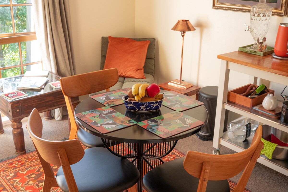 Двоповерховий автономний котедж, окремий від головного будинку з власним входом. Тихе місце в нашому життєвому кварталі, оточеному сільськогосподарськими угіддями. Просторий, світлий і просторий з видом на сільську місцевість та приватним майданчиком. Безкоштовний Wi-Fi. Безкоштовне скасування бронювання не пізніше ніж за день до прибуття. Щедрий континентальний сніданок із самообслуговуванням зі свіжими фермерськими яйцями. Парковка для кількох автомобілів або причепів. Лише 10 хвилин від яскравого історичного Вангануї. Поруч із садами SH3 і Paloma Gardens. Ми часто приймаємо бронювання на день заселення за запитом.