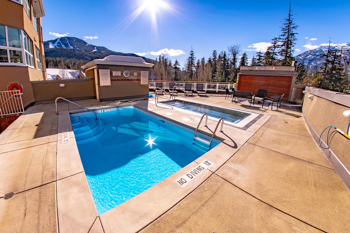 Ласкаво просимо до вашого гірського оазису. 1 хвилина пішки від підйомника Blackcomb! Наша сучасна квартира – це світла, простора кімната з однією спальнею, з панорамними вікнами, з яких відкривається ідеальний вид на дерева та гори. Насолоджуйтесь краєвидом на гору Вістлер, попиваючи каву за кухонним столом! У цьому апартаменті є все: - ліжко king-size; – диван-ліжко - повністю обладнана кухня; - гідромасажна ванна; - Keurig - Динамік Bose - центральний кондиціонер – оновлено в липні 2025 р. У будівлі є тренажерний зал, пральня, басейн та гідромасажна ванна на відкритому повітрі.