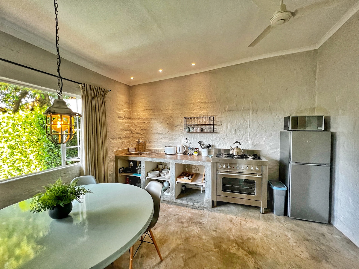 Відпочиньте в цьому унікальному, спокійному помешканні, віддаленому від цивілізації. Відокремлений приватний кам'яний котедж розташований серед пишних місцевих дерев поруч із зрошувальним каналом. З цього кам'яного котеджу з солом'яним дахом відкривається приголомшливий краєвид на зелений сад і греблю ферми. Усе на нашій території – від продуктів, які ми вирощуємо, до того, як ми живемо й виробляємо електроенергію, – базується на принципах екологічної стійкості. Тут також розташована провідна південноафриканська студія літографії The Artists' Press.