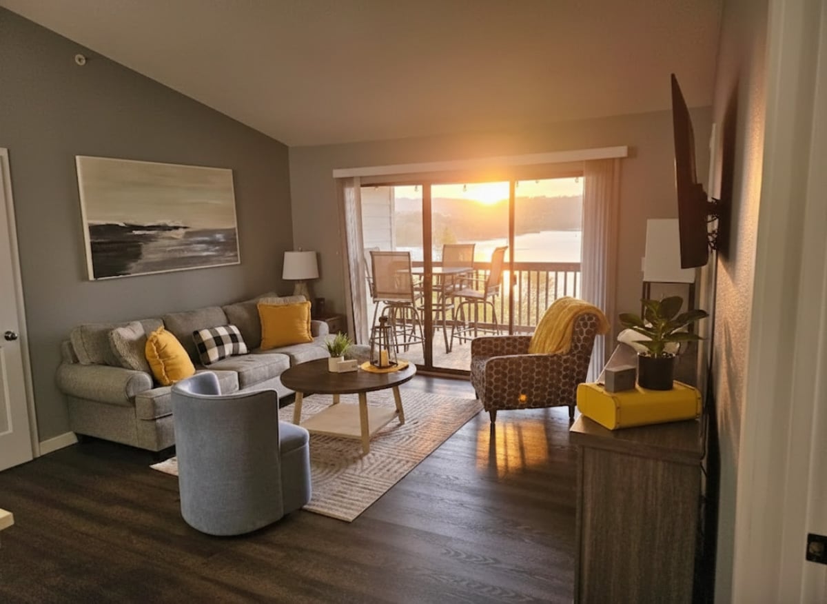 Новий люкс із гідромасажною ванною, видом на озеро, ШВИДКИМ Wi-Fi та телевізором 75 дюймів