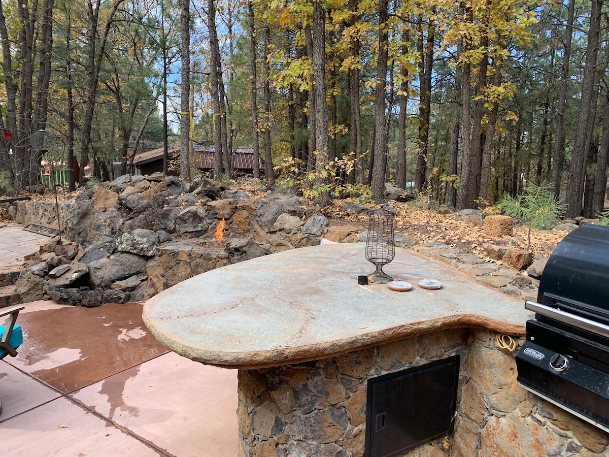 Доступно цілий рік, зручно розташоване в центрі міста Пайнтоп у Білих горах Аризони. 512 кв. футів, 1 спальня, 1 повна ванна кімната. ШВИДКИЙ НОВИЙ Wi-Fi 5G. Прогулюйтеся до The Lion's Den, Charlie Clark's Steakhouse та Eddie's Country Store. Літні місяці – час фестивалів і живої музики. Зима приносить веселощі в Sunrise Ski Park, відкриття 12 грудня 2025 року! Національний ліс Апачі-Сітгрівс, просто в кінці вулиці. Двері для собак, щенята вітаються з додатковою платою, надішліть інформацію з запитом.