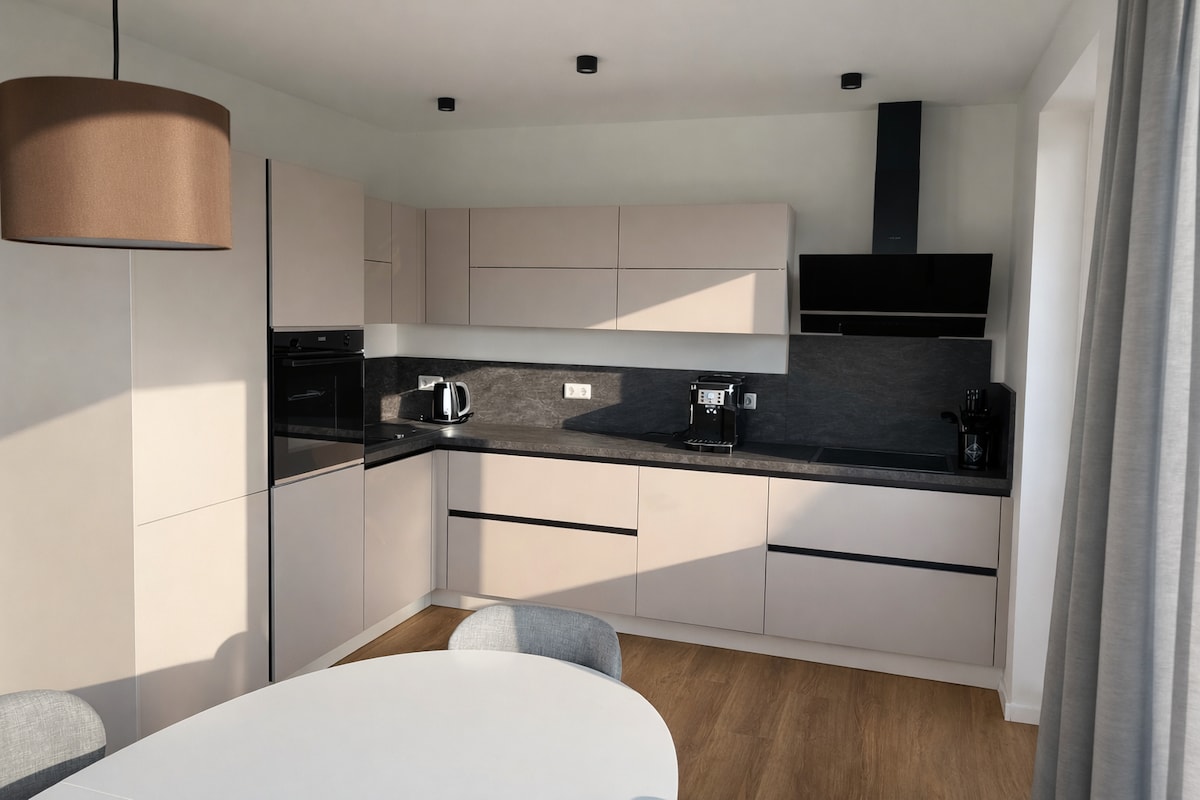 Сучасна квартира зі смаком запрошує вас почуватися добре та відпочивати. Любов до природи відображається в унікальному декоруванні квартир, зробленому з пляжних знахідок. Затишна вітальня-їдальня дуже простора і має прямий доступ до тераси. Насолодіться морським колоритом узбережжя, а також чудовим пляжним відпочинком, який не залишить бажати кращого.