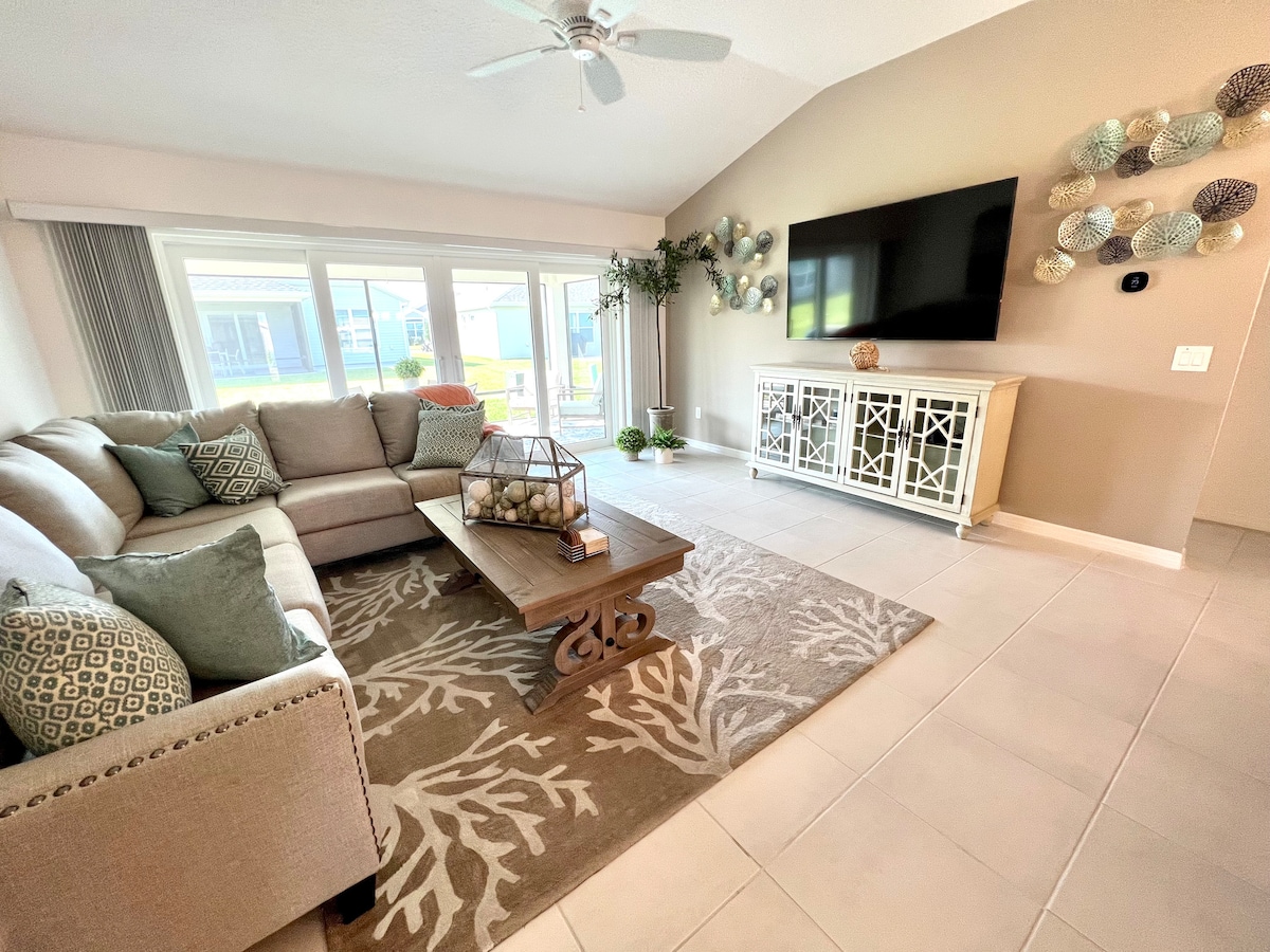 Вітаємо в ретриті вашої мрії! Це приголомшливе помешкання Moonstone поєднує в собі комфорт, розкіш і зручність. За кілька хвилин від Істпорт-сквер, Publix і Fenney Rec Center можна насолоджуватися природними стежками, басейнами, грилем Fenney Grill і представницьким гольфом - до всіх можна дістатися на автомобілі для гольфу. Відпочиньте в приватному ланаї, приготуйте їжу на кухні шеф-кухаря або спостерігайте за запуском SpaceX із вашого патіо. Завдяки моховим дубам, стильному дизайну та найкращим зручностям вас чекає ваш ідеальний відпочинок у селах. Забронюйте зараз і відчуйте магію!