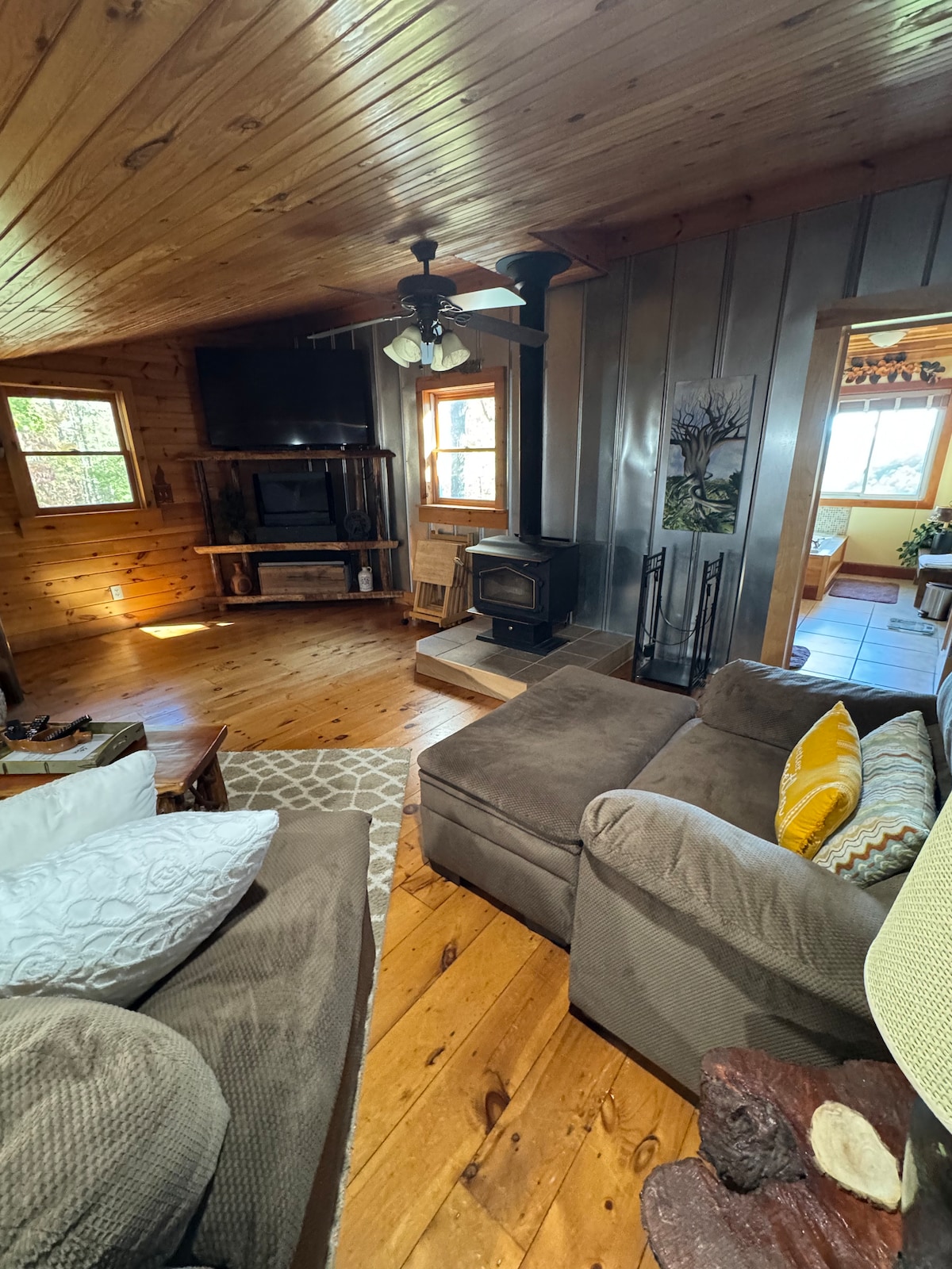 Enjoy breathtaking views of the Blue Ridge Mtns at The Sun Lodge, a cozy and welcoming cabin in a gated community, just 20 minutes from the BR Parkway. With an open floor plan, the lodge offers a loft and primary bedroom with a unique, spacious feel. Whether you're here for a relaxing getaway or need to work remotely, our super-fast Wi-Fi allows you to stay connected with ease. Important: The spiral staircases are tight. Please be mindful if traveling with small children or elderly guests.