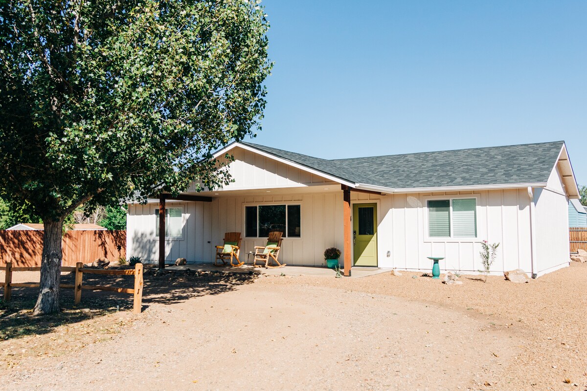 Відпочиньте і розслабтеся в цьому спокійному, стильному помешканні. Цей гостьовий будинок розташований у південній центральній долині Чино, в 15 милях на північ від Прескотта, на невеликій фермі з дружніми козами та курятами. З балкона відкривається вид на гори, а вночі небо сповнене зірок. Усі дружелюбні собаки вітаються, оскільки цей будинок має власну огорожу у дворі за плату за домашніх тварин у розмірі 30 $/перебування. Обов 'язково повідомте нам, якщо ви візьмете з собою домашню тварину під час бронювання!