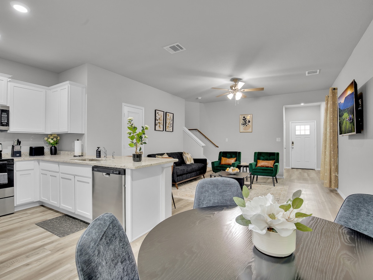 Ласкаво просимо до нашого нещодавно побудованого помешкання з 3 спальнями, призначеного для максимального комфорту та зручності. Ідеальне розташування поблизу продуктових магазинів, торгових центрів, лікарень і парків, ідеально підходить для сімей, ділових поїздок або відпочинку. Насолоджуйтеся гаражем на 1 автомобіль, просторою парковкою, незайманою кухнею з сучасною технікою, міні-баром і блискучими новими ванними кімнатами. Залишайтеся на зв 'язку завдяки безкоштовному Wi-Fi і відпочивайте в наших просторих спальнях. Забронюйте помешкання зараз для розкішного помешкання вдалині від дому