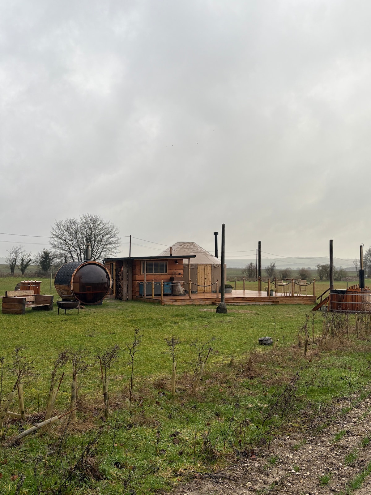 Відпочиньте в нашому глемпінговому будиночку, розташованому в сільській місцевості Котсуолд. Цей автономний будиночок пропонує ідеальне поєднання комфорту та природної краси, забезпечуючи тихий відпочинок для двох. • Ліжко розміру King size з ковдрою з натуральної овечої вовни та подушками з пір’я • Приватна, огороджена прибудинкова територія • Попередньо розігріта гідромасажна ванна та сауна на дровах включені в ціну • Затишний геодом • Чаша для багаття Kadia • Газовий гриль для барбекю на відкритому повітрі Дерев’яна сауна доступна як окреме бронювання.