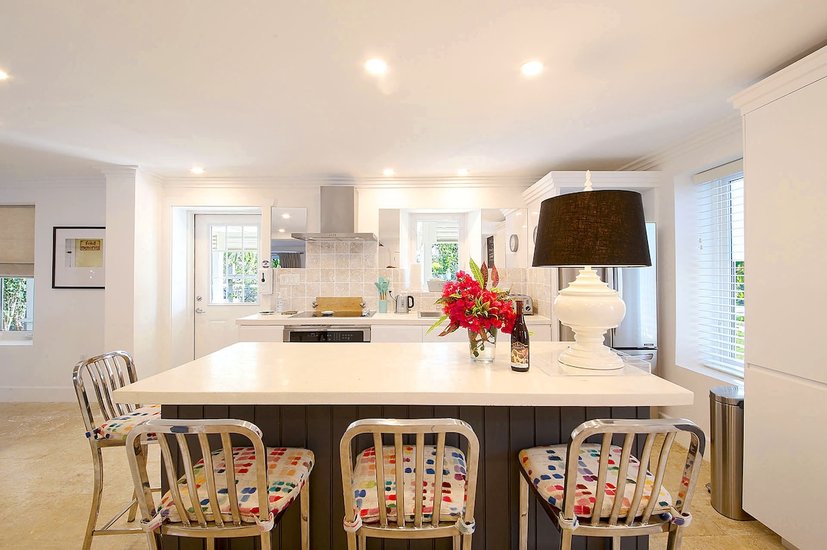 Цей заміський будиночок, нещодавно відремонтований, свіжий і шикарний. Пройдіться кілометрами по пляжу з білим піском, мрійте в гамаку в тіні пальми, а потім випийте коктейль на повністю екранованій терасі. Приготуйте свіжий улов на вулиці або дозвольте своїм креативним сокам протікати на добре обладнаній кухні. Потім ознайомтеся з усім, що може запропонувати Елютера з цього центрального розташування. RD (2B/2B) можна орендувати самостійно для 4 осіб або *з Morning Glory (по сусідству), щоб розмістити до 10* (окреме помешкання).