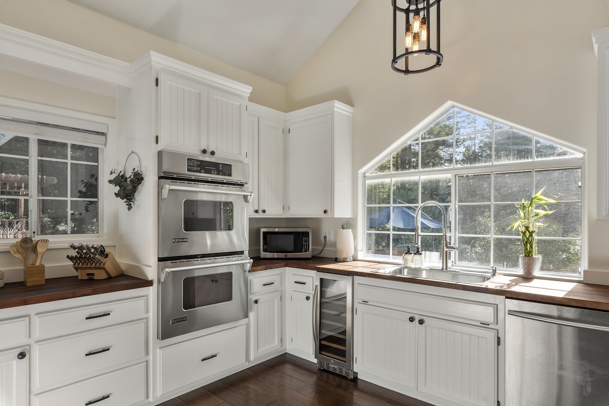 НОВИНКА! Доступна зарядка електромобіля! Прокиньтеся до хрусткого ранку, розташованого в секвойних лісах із доступом до приватної гідромасажної ванни. Проплавайте по російській річці та насолоджуйтеся відзначеними нагородами виноробнями в окрузі Сонома. Після повернення пообідайте на свіжому повітрі з барбекю, каміном і патіо з консольною парасолькою. Цей нещодавно відремонтований сучасний фермерський будинок захопить вас розкішними зручностями, зокрема мармуровим каміном, ігровою кімнатою з більярдом, пінг-понгом і ретро-ігровою приставкою.