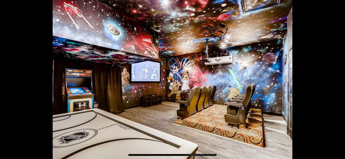 Ласкаво просимо до нашої повністю відремонтованої вілли з чотирма спальнями, трьома ванними кімнатами, розташованої менше ніж за чотири милі від Діснейленду, і лише за декілька хвилин їзди від Universal, Sea World, Lego Land та інших місцевих туристичних об’єктів. Розроблені тематичні спальні включають Гаррі Поттер, Міккі та Мінні Маус, «Зоряні війни» та романтичну головну спальню, яка дозволяє комфортно відпочивати. Басейн, спа-центр і вся вілла лише для вас, не потрібно ділитися ні з ким, тож розслабтеся і насолоджуйтеся!