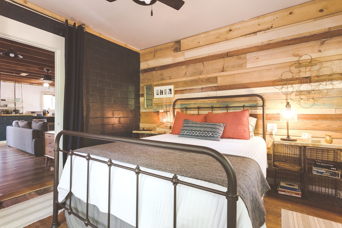 Recharge after your Austin adventures at this quirky-cool creekside cottage—where rustic charm meets comfy luxury! Tucked away in an urban oasis, this cozy spot has all the vibes. The dreamy bedroom overlooks the creek and features the comfiest queen bed ever. Got an extra guest? The pull-out chair becomes a twin futon! – Quick Uber to downtown – Full kitchen for foodie fun – Walk to awesome local eats – Guidebook of our fave spots – Two bikes for cruising – Free snacks & coffee, of course!
