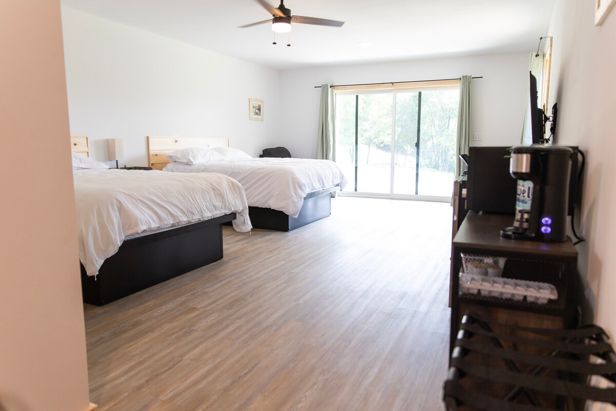 Помешкання серії Bluffside Garden's Oak схоже на ваш дім далеко від дому. У нашому помешканні серії Oak є постільна білизна до 11 осіб, повністю обладнана кухня, їдальня та вітальня. У помешканні серії Oak є 4 окремі спальні та дві ванні кімнати. Усе зручно розташоване на шосе 9 і 52 з прямим доступом до велосипедних доріжок у Декора, Айова! Готуйтеся й досліджуйте сади Блаффсайд у Декора, Айова!