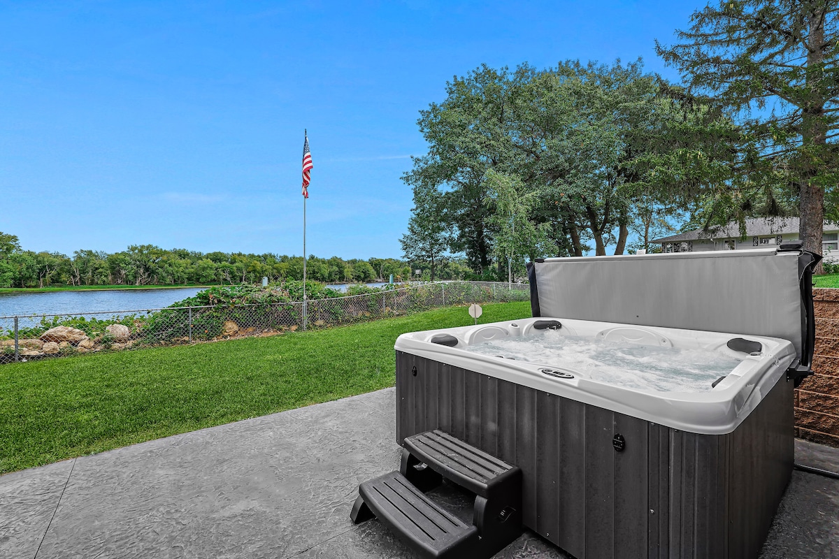 Відпочиньте в приватному помешканні на березі річки Міссісіпі на території 18 акрів. Цей просторий будинок площею 6300 кв. футів розташований високо, звідки відкривається приголомшливий краєвид на річку. Вона вміщує до 14 осіб, має 5 спальнь, 10 ліжок і кілька віталень, ідеально підходить для груп і зустрічей. Насолоджуйтеся повністю укомплектованою кухнею з двома холодильниками, безкоштовною кавою, пральнею, ігровою кімнатою, іграми та відкритим каміном. Спокійне, затишне помешкання, створене для комфорту – ваш ідеальний відпочинок на березі річки. Без домашніх тварин. Майже 200 5-зіркових відгуків!!!