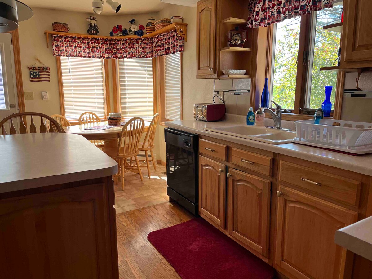 Цей просторий будинок, розташований у штаті Вісконсин та бездротовому районі, дозволить вам відпочити, насолоджуючись ковзними пагорбами. Комфортно розміщується до 15 місць з відкритим простором для гри та місцями для охолодження. Цей будинок розташований поруч з громадським мисливством та риболовлею, квадроциклетними дорогами ( власними машинами), снігомобілями та зоною активного ведення сільського господарства. Готуйте сімейні страви на великій кухні, в їдальні або просто насолоджуйтеся спокійністю в країні. TerraVista House перевіряється і ліцензується штатом Вісконсин.