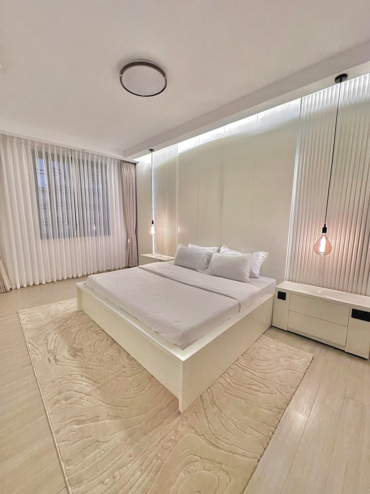 A loft Style apartment designed for the perfect relaxation. This loft will give you "The Pent House feel". You will immediately notice the double height ceilings, wide balcony area with an open view, the bedrooms and common areas all together very spacious. The house also serves a spacious bathroom with vanity and good lighting. If you are a content creator, the natural light and custom made designs will favor good production.