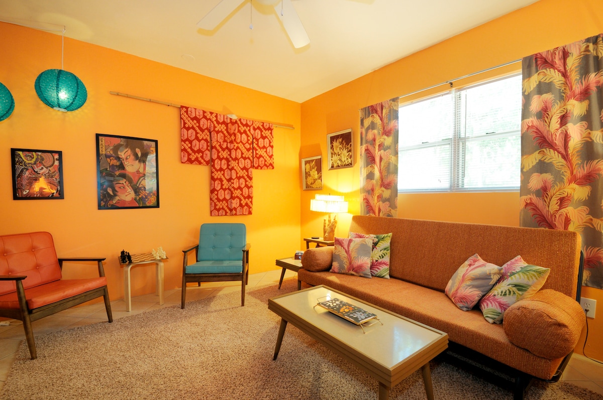 Котедж Enchanted Cottage - це ідеальний оазис для відпочинку в центрі міста до магазинів і ресторанів Боніта-Спрінгс. Відкрийте для себе це унікальне помешкання, прогуляйтеся садами, рибою або каяком і досліджуйте річку, перш ніж відкрити для себе новий парк фудтраків, бари та фестивалі вихідних у Боніта-Спрінгс. Чудовий маєток 1920-х років, зручно розташований; 15-20 хвилин до пляжів RSW, FGCU та пляжів SWFL з багатьма сусідніми магазинами та ресторанами.