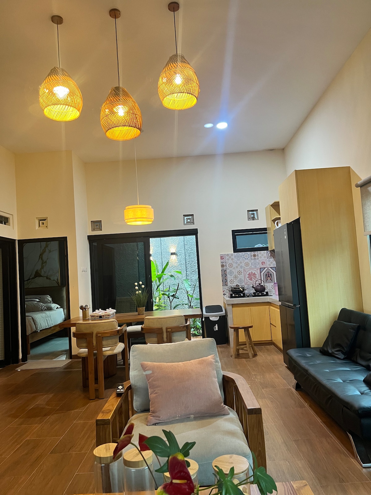 Ciptakan kenangan di tempat unik,asri,pemandangan pegunungan khas wonosobo cuaca dingin sejuk dan ramah keluarga ini. Furnitur estetik ala japandi semua dr kayu jati pilihan,penataan tempat yg nyaman,kamar mandi dgn air panas,kitchenset,googletv,taman indoor dgn deck,taman luar & garasi. Sangat cocok untuk yg berwisata di wonosobo dieng & sekitaranya (Kami menerima / dititipkan anabul-dogy & cat-ukuran kecil dgn syarat2 tertentu & kontak dulu sblmnya)