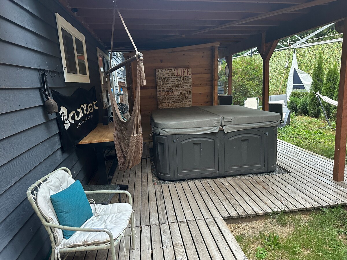 Це унікальне помешкання має власний сучасний стиль. Кількість місць: два спальні місця з ліжком розміру Queen size. Добре обладнана кухня, телевізор, Wi-Fi, невеликий стіл, душова кабіна, пральна/сушильна машина, склепінчаста стеля в спальні та тераса з гідромасажною ванною на двох осіб. Парковка для двох автомобілів. Власники живуть по сусідству. П 'ять хвилин їзди до Woodinville Wine Country і центру Вудінвілла. Поруч із парком Коттедж-Лейк, бібліотекою Вудінвілла та стежкою Tolt-Pipeline Trail. Забороняється перебування з домашніми тваринами, куріння та вейпінг, а також проводити вечірки.