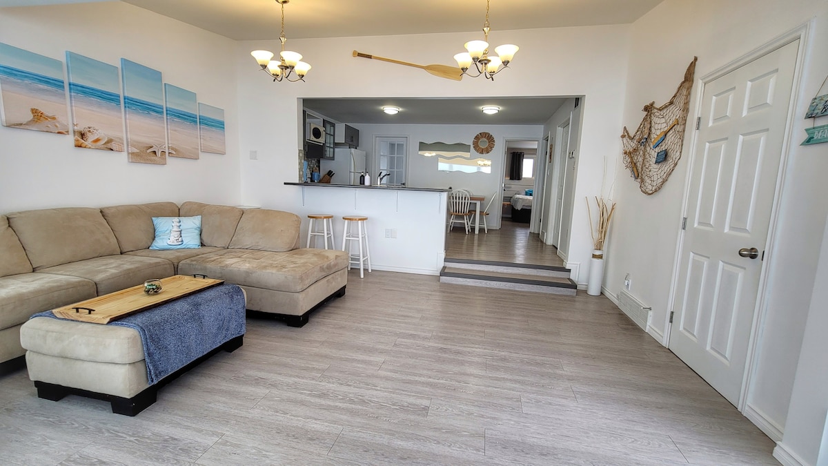 This is the perfect getaway within just an hour from Winnipeg! A beautiful beach front coastal theme cottage that will make you feel like you are by an ocean during the summer. You can relax on a comfy chair with a cup of coffee and enjoy the gorgeous view directly at the lake right through the windows. It is especially mesmerizing at sunset! Access to your own private sandy beach the moment you step out of the door. In the winter, you can go ice fishing right on the lake.