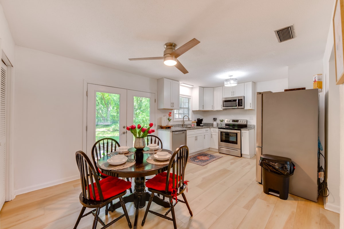 • Fully stocked kitchen! • Hi speed WiFi + Desk • Smart TV's in every room • Nespresso + Keurig w/ pods • Washer + Dryer • Safe, quiet Neighborhood in Old Town/Midtown. Join the locals for dog walking, jogging, or casual strolling while taking in the beautiful historic homes of Old town/Midtown! Situated along canopy tree lined streets. The atmosphere here is serene, welcoming, peaceful and quiet. Fully stocked spacious kitchen has everything for those who prefer to dine in.