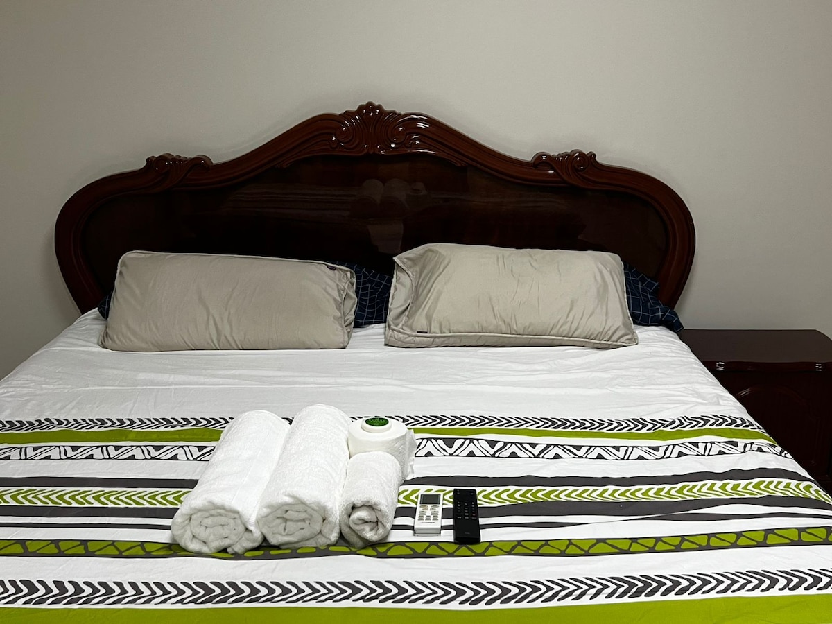 Відхиліть нашу комфортну та простору квартиру з кухнею, ванною кімнатою, ванною кімнатою, вітальнею, двома спальнями та пральнею, центральною, щоб пересуватися в будь-яку точку міста на громадському транспорті або особистому транспорті.