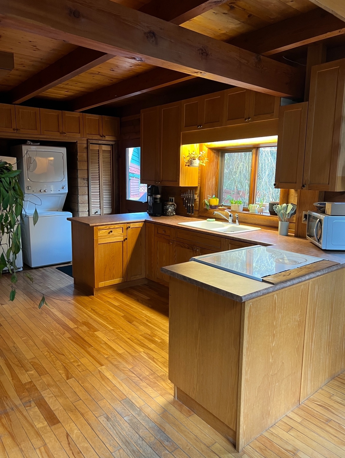 Наш бревенчатий будинок був побудований для копіювання історичних будівель у Британській Колумбії з лінією даху, запозиченою з Квебеку. Головний поверх - це відкрита концепція з кухнею, їдальнею та вітальнею. Спальні та ванна кімната знаходяться на верхньому поверсі. У мене є ванна з кігтями, але у мене немає душу. Задній двір великий і огороджений для дітей і собаки. Візьміть із собою дрова, якщо хочете скористатися вогнищем. Принесіть капсули, якщо хочете скористатися Keurig або Nespresso.
