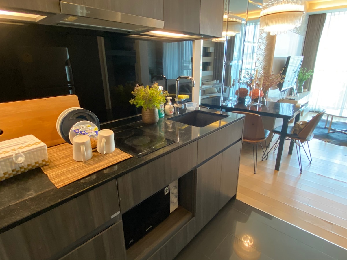 R1/Стильна затишна велика міська кімната@Ratchada/Walk2Train