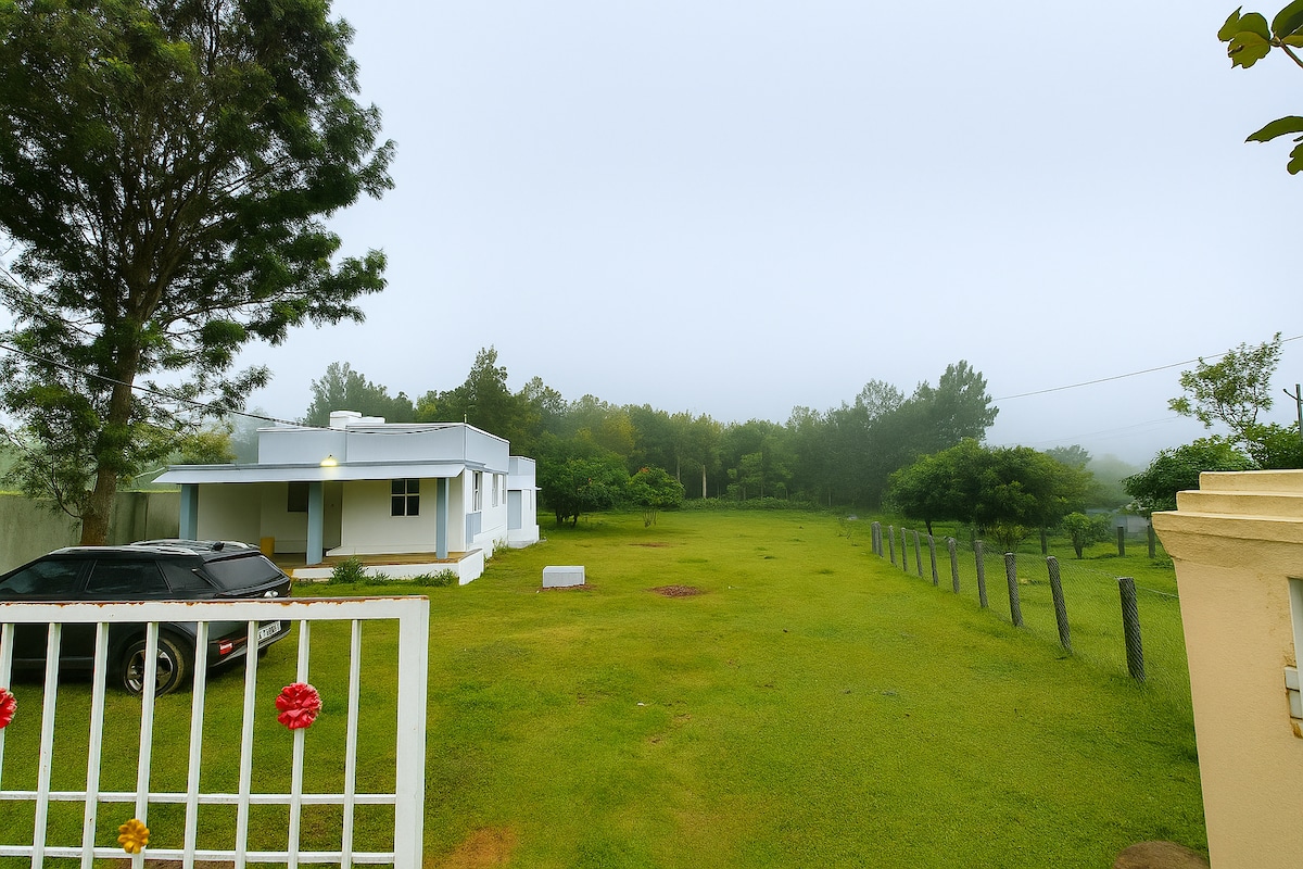 Зупиніться на приватній віллі 1BHK, на території 0,5 акра, лише для вас. Напишіть мені, щоб отримати знижки на 3+ ночі... Чудово підходить для друзів, невеликих сімей. Спокійне розташування за 800 м від YMCA Yelagiri та за 15 хвилин від центру міста. - Великий комплекс з газонами та фруктовими деревами - Щоденні види на схід сонця над пагорбами. - Швидкий Wi-Fi + резервне копіювання через 4G-адаптер - Кондиціонер у спальні, вода з обратним осмосом, гарячий душ - Повноцінна кухня з холодильником, плитою та посудом – Інвертор + сонячна лампа: безперебійне зовнішнє освітлення - Зручно розрахована на 7 спальних місць. - Багаття за запитом