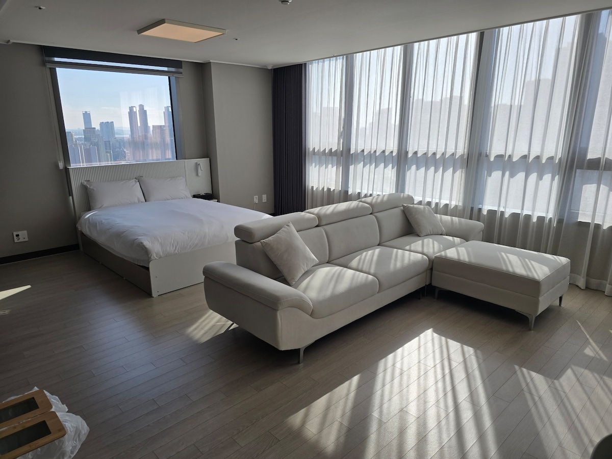 Розташована на високому поверсі (17-й поверх), ви можете розслабитися та насолодитися відкритим островом Йонджон, спостерігаючи за морем, не порушуючи свій вид. Ви також можете подорожувати спокійно та безпечно зі своєю дорогою сім’єю, домашнім улюбленцем. Оголошення Висотна студія з видом на океан Тераса з видом на море Йонджондо та острів Піондо, не турбуючи краєвид (встановлено стіл і стільці) Можна з домашніми тваринами. 1. Вид на океан Ми керуємо кімнатою Ocean Soleview як Airbnb. 2. Високий повний вид на океан 3. Просте приготування їжі та приготування їжі 4. Дозволено перебувати з домашніми тваринами. (Ви можете дивитися YouTube та Ott (з Xiaomi Mystic))