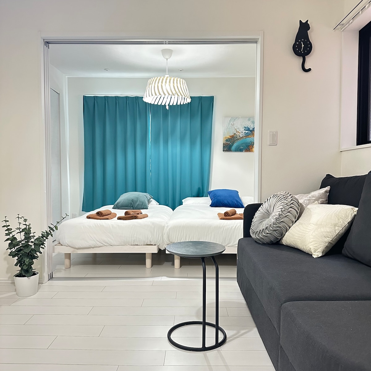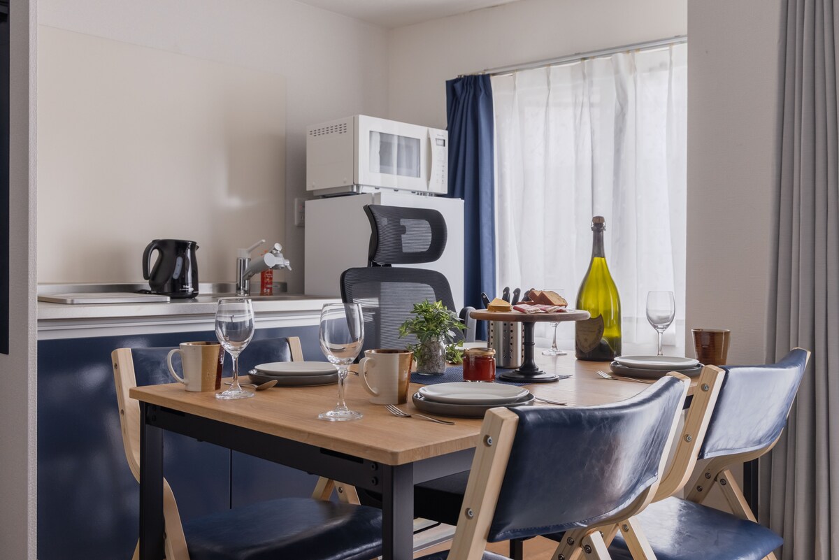 Насолодіться перебуванням у новій студії площею 36 кв. м біля станції Йокогама. Ідеально підходить для 4 гостей: двоспальне ліжко, односпальне ліжко та диван-ліжко. Помешкання світле, просте та повністю обладнане кухнею, власною ванною кімнатою, високошвидкісним Wi-Fi та пральною машиною з сушаркою — ідеально підходить для сімей, друзів або ділових поїздок. Всього 27 хвилин на поїзді до Сібуї. Зручний доступ до Мінато Мірай, Чайна-тауну, Камакури та Зуші. Самостійне прибуття за допомогою смарт-замка. Чудово підходить для тривалого перебування та віддаленої роботи.