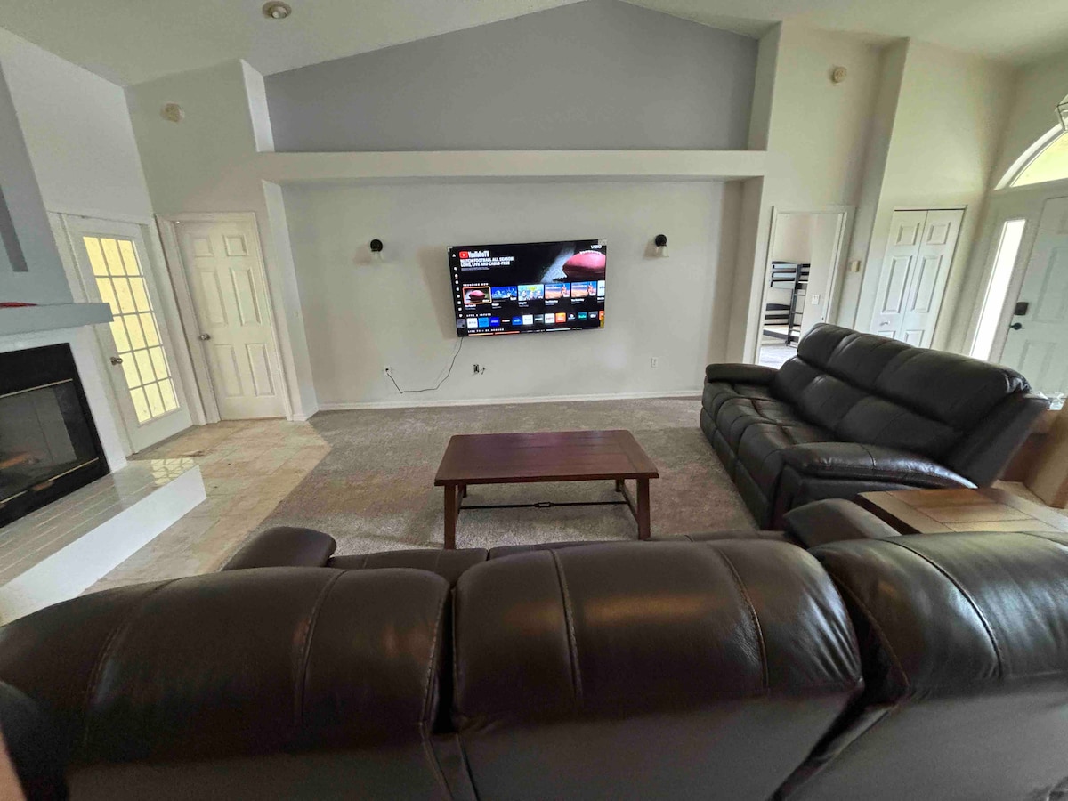 Ласкаво просимо до вашого другого дому в Окалі! Цей просторий будинок із 4 спальнями/3 ванними кімнатами розташований на більш ніж акрі спокійної флоридської краси всього за 10 хвилин від WEC. Відпочиньте в затишній вітальні біля каміна, насолоджуйтеся повноцінним кавовим баром щоранку та залишайтеся продуктивними завдяки спеціальному робочому місцю. На відкритому повітрі можна розслабитися під зірками біля багаття, приготувати барбекю на грилі та просто прогулюватися. Ідеально підходить для мандрівників, сімей, віддалених працівників і груп, які шукають комфорт і зручність. - Усього за кілька хвилин до Рейнбоу-Спрінгс