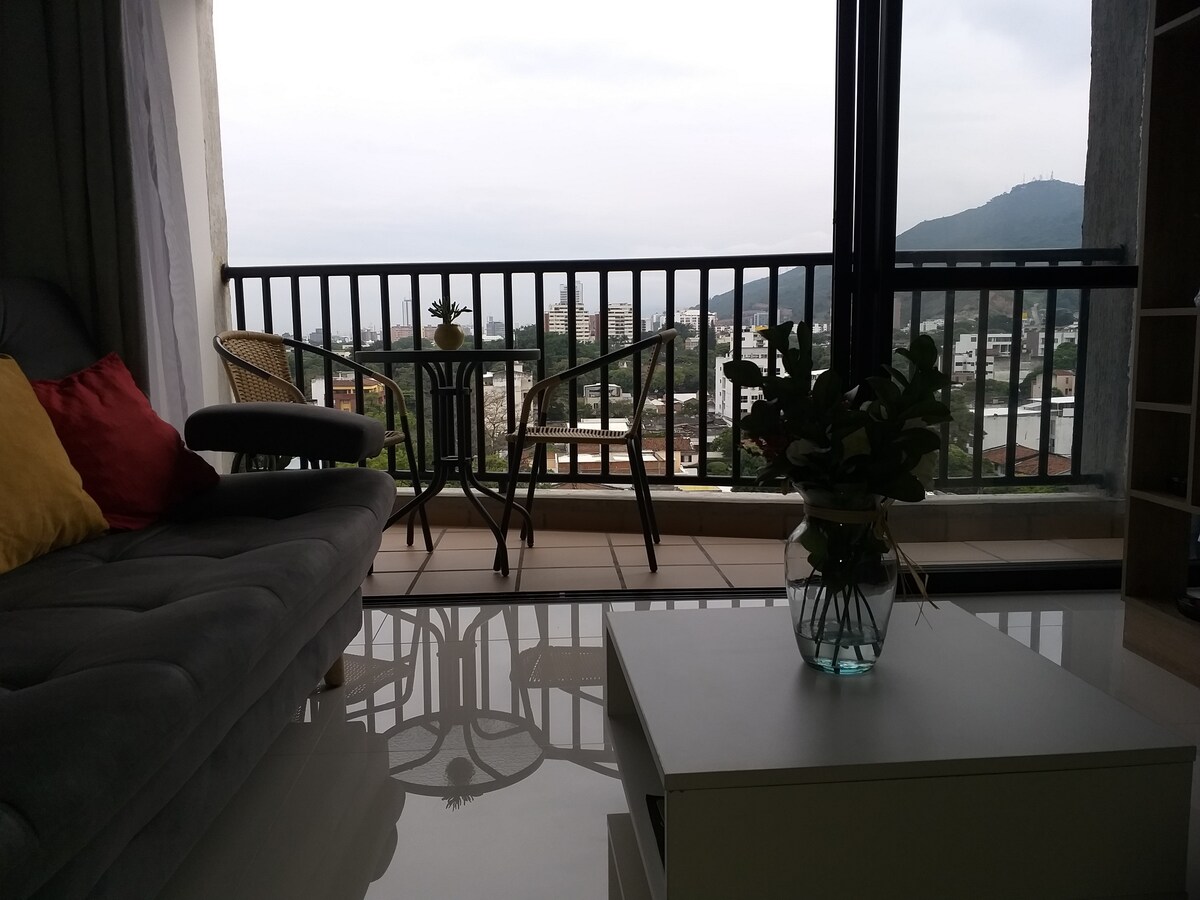 Edificio con diseño moderno para disfrutar de las mejores vistas de Cali, tiene una ubicación estratégica en el norte de la ciudad: ¡será muy fácil planear tu visita! Cerca al aeropuerto, centros comerciales y zona gastronómica. Apartamento con amplio balcón privado con hamaca y sofá, cama queen, escritorio, cocina totalmente dotada, lavadora y baño. Terraza con vista 360 sobre la ciudad de Cali te permitirá gozar de la brisa y los atardeceres caleños. Cuenta con ducha al aire libre y BBQ.