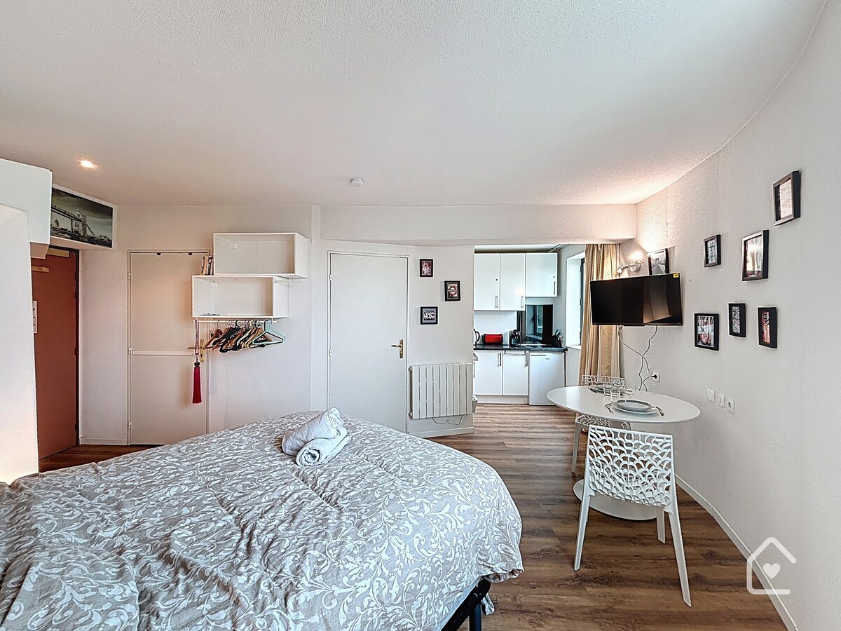 Ласкаво просимо до L'Éscale du Futuroscope! Затишна та функціональна студія розташована всього за 8 хвилин ходьби від Футуроскопу, з безкоштовною приватною парковкою. Чудово підходить для пар, сімей або бізнес-мандрівників. Помешкання може вмістити до 4 гостей. Для більшої гнучкості є обладнана кухня, швидкий Wi-Fi, телевізор високої чіткості, робоче місце та самостійне заселення. Поруч магазини та ресторани. Пакуйте валізи та насолоджуйтеся перебуванням у повній мірі!