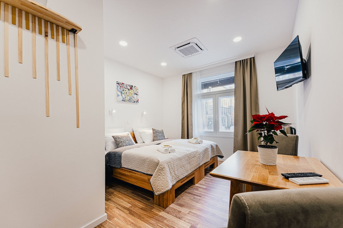 Апартаменти63 - це чудові помешкання на відкритому повітрі з приватним балконом. Ідеально підходить для пар і самотніх людей, які люблять перебувати в пішій доступності від Старого міста! Вони розташовані в затишній будівлі на подвір 'ї, а наш двір славиться своїми ресторанами та автентичним винним магазином. Ми знаходимося всього в 2 хвилинах ходьби від Головної площі Загреба!
