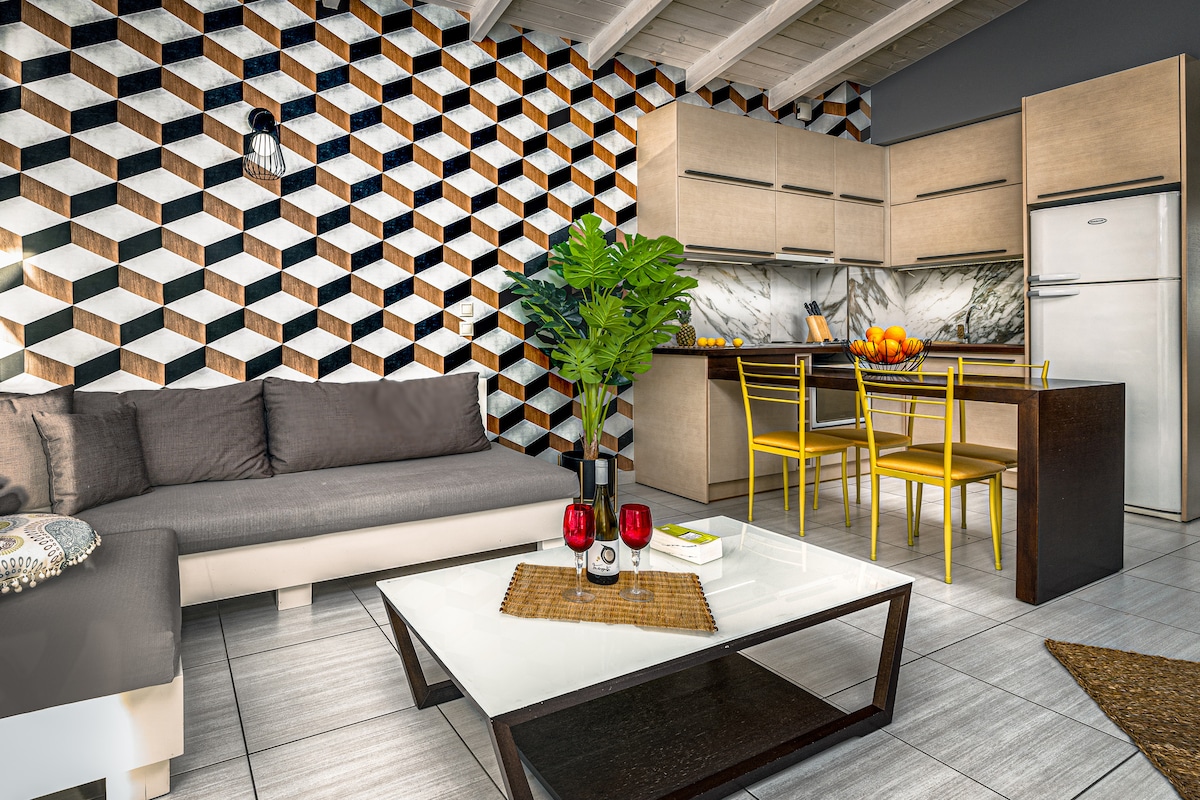 Ласкаво просимо до нашої яскравої та елегантної квартири, розташованої за 2,5 км від аеропорту Закінфа. Наше помешкання розташоване в тихому та зручному районі, всього в декількох хвилинах ходьби від прекрасних пляжів, ресторанів, супермаркетів тощо. У квартирі є зручне двоспальне ліжко та односпальне ліжко, повністю обладнана кухня, затишна вітальня, кондиціонер, безкоштовний Wi-Fi, ванна кімната та доступ до ліфта. Ми з нетерпінням чекаємо на вас і пропонуємо найкращі враження під час вашого перебування на Закінфі!
