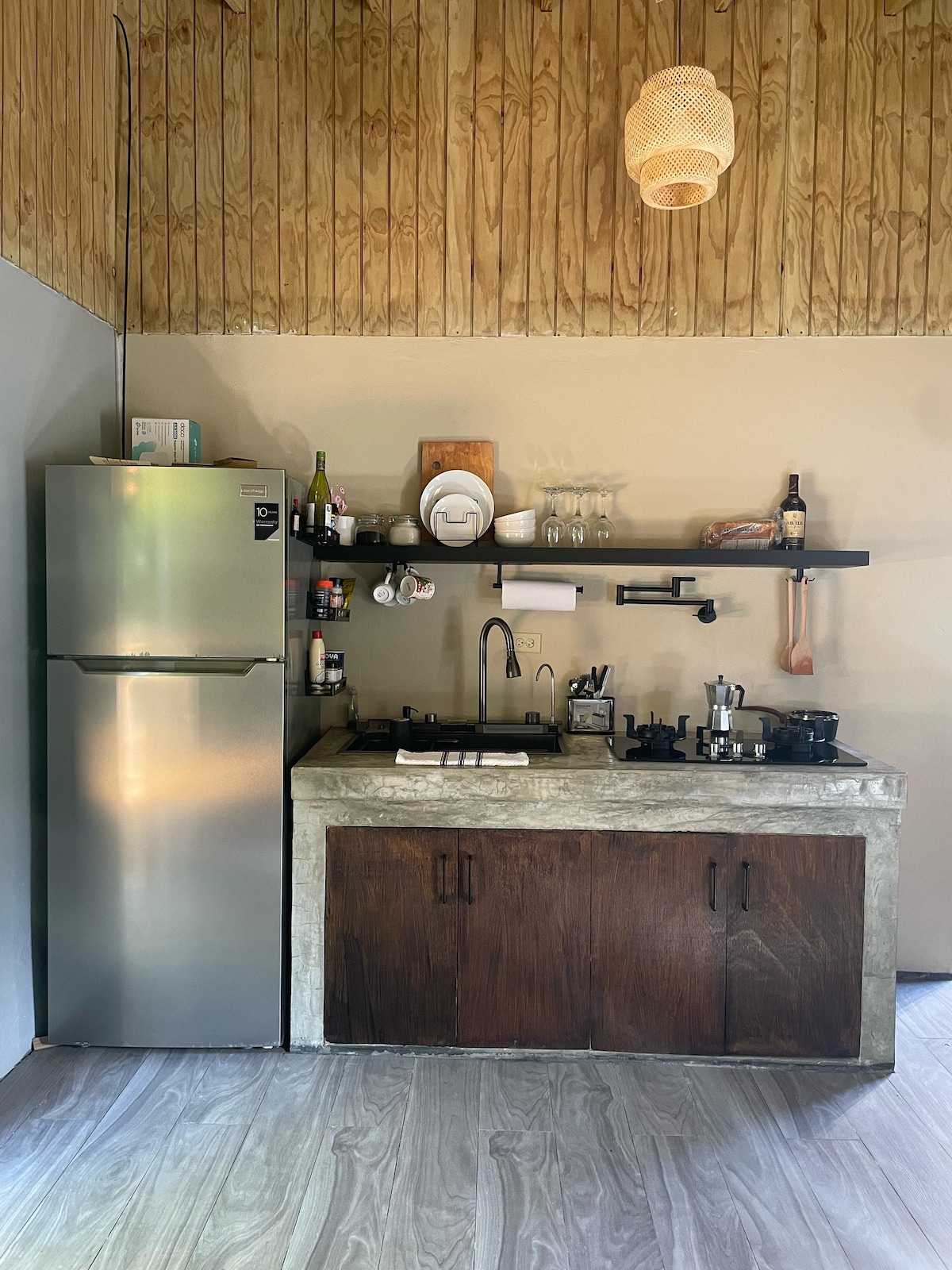 Заміський будинок, оточений фруктовими деревами. Перший поверх помешкання. Вона складається з кімнати та невеликої «сім 'ї» з кушеткою та розкладним ліжком. Ванна кімната з гарячою водою, рушниками та шампунем. Повністю обладнана кухня з електричною плитою, холодильником, каструлями, посудом, мікрохвильовою піччю, кавоваркою тощо. Телевізор і Wi-Fi? У ньому є спільна простора тераса з зоною для барбекю та плитою. Гамак, стіл доміно. Поруч є ресторани, пекарня, заправки, колмадо.