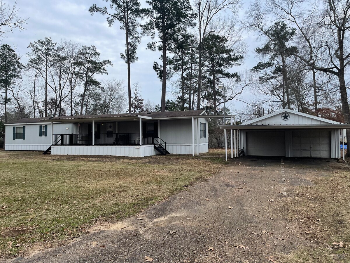 Ми знаходимося в 5 милях від прекрасного озера Сем Рейберн. Ви можете ловити рибу цілий день або вечір, повертайтеся додому на станцію прибирання риби для улову. Достатньо місця, щоб припаркуватися та зарядити човен, щоб бути готовим до наступного дня. Приватний майданчик/гриль і сидіння, якщо ви вирішите приготувати їжу. Чистий гарячий душ. Вітальня дуже чиста з телевізором/фільмами або книгами, якщо ви вирішите читати. Постільна білизна розміру Queen size для чудового нічного відпочинку. Дуже тихо, лише корови, птахи та білки