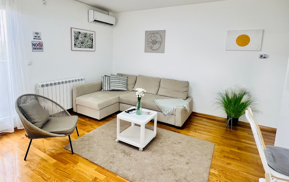 Пір 'я, чарівна квартира розташована в затишному районі між Земуном і Новим Белградом, але все ще недалеко від чудової їжі та гарного відпочинку. Всього в 15-20 хвилинах ходьби від річки Дунай та набережної з безліччю ресторанів і нічних клубів з дивовижним видом. У пішій доступності від громадського транспорту, продуктових магазинів, ринків, пекарень, аптек, зеленого ринку Stari Merkator, тренажерних залів... Підходить для розміщення 4 осіб. Перед квартирою пропонується безкоштовний Wi-Fi та безкоштовне місце для автомобіля.