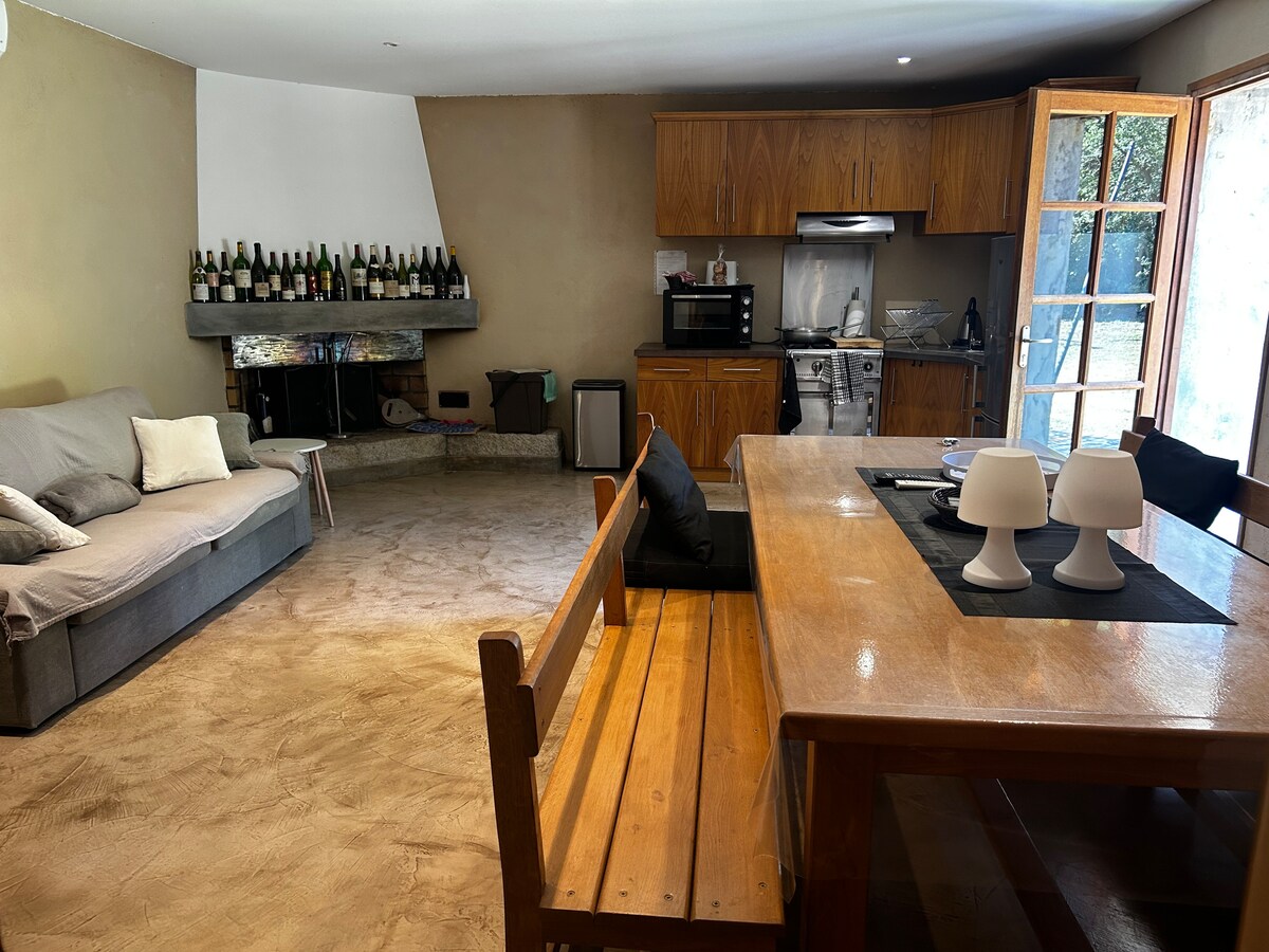 Комфортний заміський будинок, дуже тиха, лісова земля + 2000 м. Електричні ворота на вході. Wi-Fi Обладнана кухня ( Nespresso, мікрохвильова піч...), кондиціонер, камін, барбекю, плоский екран + супутникове телебачення, спальня (160 см),диван-ліжко, італійська ванна кімната з душем. Кухня на відкритому повітрі з холодильником, пральною машиною, душем на відкритому повітрі, майданчиком для петанку, надувним спа-зоною на відкритому повітрі. Справжній оазис спокою.