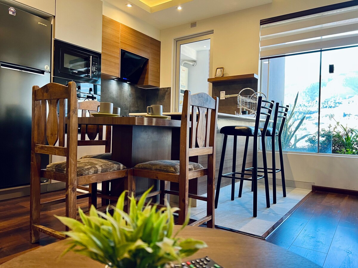 Ласкаво просимо до нашої затишної квартири в центрі Кочабамби! Розташована в центральній, новій та сучасній будівлі, ви будете недалеко від яскравого парку Фіделя Анже та в пішій доступності від усіх туристичних місць міста, супермаркетів, нічних клубів і ресторанів. Крім того, ви можете насолоджуватися такими зручностями будівлі, як басейн і красивий екологічний сад. Зробіть свій візит до Кочабамби незабутнім!