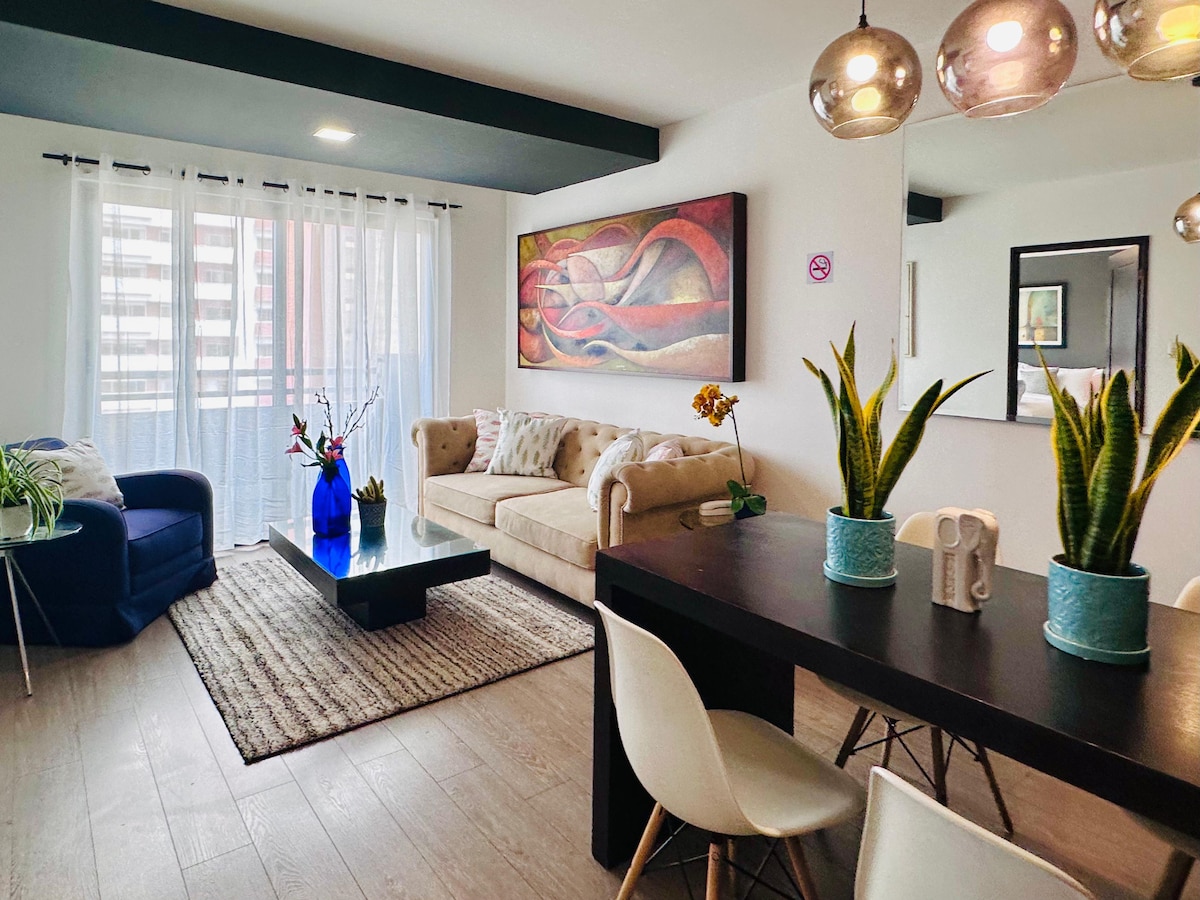 Відчуйте атмосферу жвавого центру міста Гватемала, перебуваючи в цьому стильному помешканні, яке може похвалитися приголомшливим краєвидом на вулкан із затишної зони відпочинку на балконі. Апартаменти розташовані в центрі міста Гватемала, навпроти Dubai Center, – насолоджуйтеся безпрецедентним доступом до найкращих ресторанів, магазинів і розваг. Ми також пропонуємо послугу прокату семимісних позашляховиків класу люкс за гнучкими умовами в будь-якій точці Гватемали.