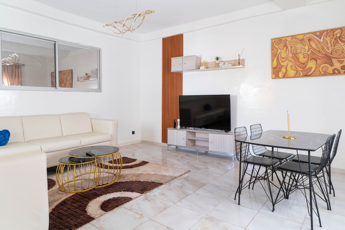 Bienvenue dans notre luxueux appartement tout neuf, situé en face de l’arrêt du Bus Rapid Transfer ( BRT ) de liberté 6, pensé pour offrir une ambiance cosy et apaisante. De la baignoire hydromassante, à la cheminée électrique en passant par les enceintes du plafond, tout est choisi avec attention . Le logement a également un joli patio privé pour savourer un café le matin, un verre en fin de journée Notre appartement vous offre tout le confort nécessaire pour un séjour inoubliable